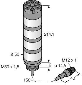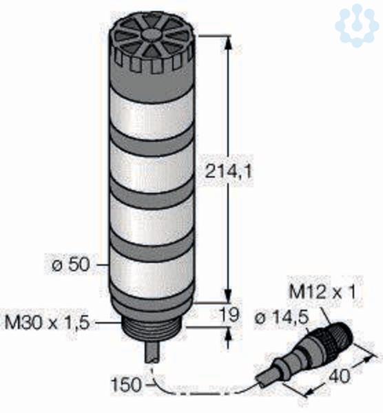 LED-Anzeige, Signalsäule, Signaltongeber max. 92 dB, Schwarzes Kunststoffgehäuse, Schutz gegen elektromagnetische und hochfrequente Störungen, Schutzart IP50, Kabel mit Stecker M12X1, 150 mm, Betriebsspannung: 18?30 VDC oder 24 VAC bei jeweils 45mA pro LED-Farbe, Eingänge: PNP / NPN, Leitungslänge 0.15 m, Farben: Weiß (COL 1) / Grün (COL 2) / Gelb (COL 3) / Rot (COL 4)