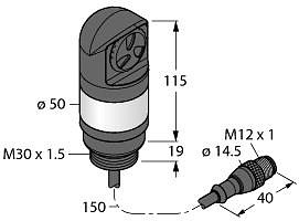 LED-Anzeige, Signalsäule, Signaltongeber: Gedichtet, Dauerton max. 94 dB, Schwarzes Kunststoffgehäuse, Schutz gegen elektromagnetische und hochfrequente Störungen, Schutzart IP67, Kabel mit Stecker M12X1, 150 mm, Betriebsspannung: 18?30 VDC oder 24 VAC bei jeweils 45mA pro LED-Farbe, Eingänge: PNP / NPN, Einfarbig: Gelb (COL 1)