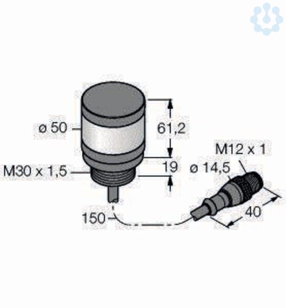 LED-Anzeige, Signalsäule, Schwarzes Kunststoffgehäuse, Schutz gegen elektromagnetische und hochfrequente Störungen, Schutzart IP67, Kabel mit Stecker M12X1, 150 mm, Betriebsspannung: 18?30 VDC oder 24 VAC bei jeweils 45mA pro LED-Farbe, Eingänge: PNP / NPN, Einfarbig: Grün (COL 1)