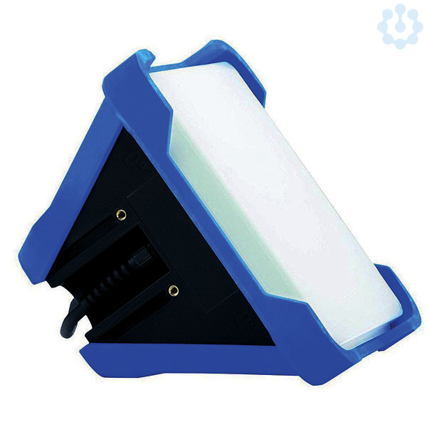 Energieeffizienzklasse: A, Mobile LED-Arbeitsleuchte, schlagfestes Gehäuse mit gummierten Kanten und integriertem Tragegriff, Schutzkontakt-Steckdose auf der Rückseite, jede der 4 Seitenflächen verfügt über einen anderen Neigungswinkel hierdurch können 5 Abstrahlpositionen mit Neigungswinkeln von 0-90°Grad erzielt werden, Zertifizierung BGI600/BGI608: Einsatz für erschwerte Bedingungen, Bereiche K1 + K2, Leistung: 35 W, Lichtstrom: 3850 lm, Farbtemperatur: 6500 K, Abstrahlwinkel: 180°, Funkentstört nach DIN62493, Gehäusefarbe: Schwarz/Blau, Breite: 273 mm, Höhe: 256 mm, Tiefe: 163 mm, Schutzart: IP54, inkl. CableFix-Aufhängung. Ohne Notlichtfunktion.