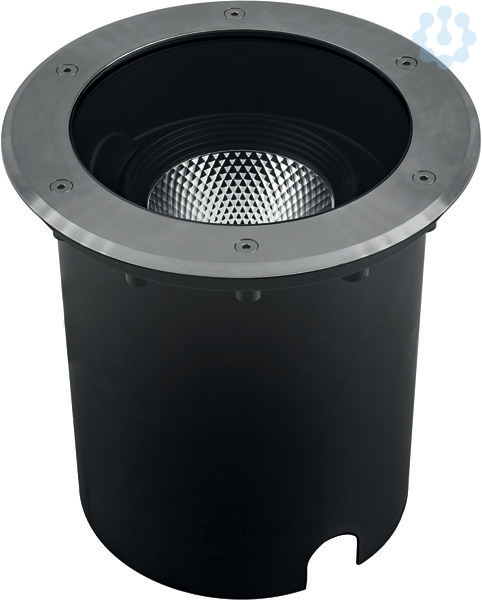 Der Leuchtenkörper der Bodeneinbauleuchte ist aus massivem Aluminium gefertigt, der obere Abdeckring hingegen aus V2A-Edelstahl und kann fuer vielfältige Anwendungen im Außenbereich verwendet werden. Die Montage erfolgt mittels der im Lieferumfang befindlichen Kunststoff-Einbauhuelse. Über eine Justierschraube auf der Unterseite der Leuchte wird der gewuenschte Schwenkwinkel eingestellt, somit muss die Leuchte selbst nicht geöffnet werden. Außerdem entstehen auch keine zusätzlichen Kosten fuer ein Vorschaltgerät, da der Anschluss direkt an die 230V-Zuleitung erfolgt. Zur Vermeidung von Kondenswasser befindet sich auf der Unterseite der Leuchte ein selbstentlueftendes Entlueftungsventil. Die maximale Überfahrgeschwindigkeit beträgt 20km/h. Die Leuchte besitzt einen Ausstrahlwinkel von 23°.. Der Schwenkwinkel beträgt 25°..