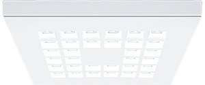 Flache und modulare LED Deckenanbauleuchte mit Linsenoptik. Leuchten Leistung: 19 W, DALI steuerbare Leuchte (DALI only) mit LED-Konverter, LED-Lebensdauer 50000 h bis zu einem Lichtstromrückgang auf 95 % des Anfangswertes. Farborttoleranz (initial MacAdam): 3. Leuchten Lichtstrom: 2830 lm, Leuchten Lichtausbeute: 149 lm/W. Farbwiedergabe Ra > 80, Farbtemperatur 4000 K. Symmetrisch sehr breit abstrahlende Leuchte (wide beam). Lichtlenkung über quadratische Linsenoptik entblendete Lichtverteilung mit UGR < 19 und L65 < 3000 cd/m² gemäß EN 12464:2011, geringe Schmutzempfindlichkeit und einfache Reinigung, flaches Leuchtengehäuse aus Stahlblech pulverbeschichtet in weiß, Leuchtengehäuse mit sichtbarer Leuchtenhöhe von 52mm, Leuchte halogenfrei verdrahtet, Abmessungen: 1200 x 300 x 52 mm, Gewicht: 7 kg