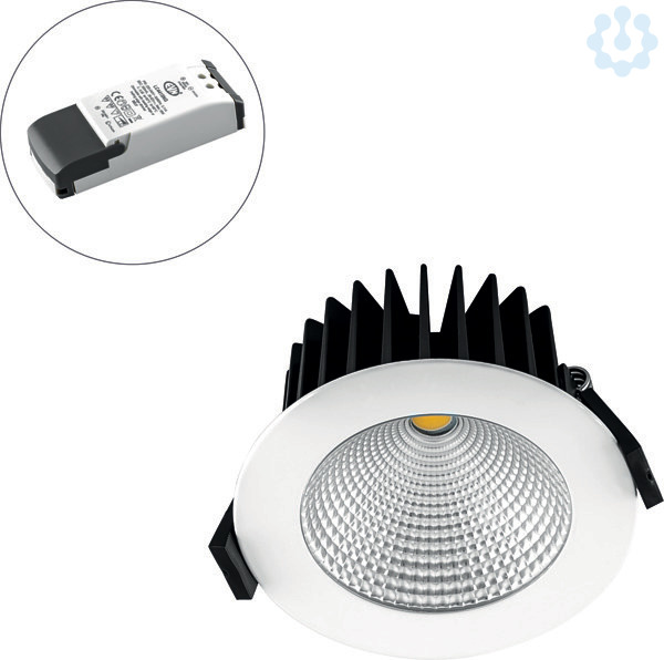 Mit der LED Deckeneinbauleuchte lassen sich, dank der hohen Lichtausbeute, auch anspruchsvolle Beleuchtungsaufgaben problemlos realisieren. Dank der gegebenen Schutzart kann die Leuchte z. B. auch im Feuchtraum eingesetzt werden. Zusätzliche Kosten fuer Leuchtmittel entfallen bei dieser Leuchte, da die Leistung von einem fest verbauten LED-Chip geliefert wird. Da im Lieferumfang das Netzgerät bereits enthalten ist, fallen auch hierfuer keine zusätzlichen Kosten an. Zusätzlich ist die Leuchte auch ueber Phasenanschnitt dimmbar.