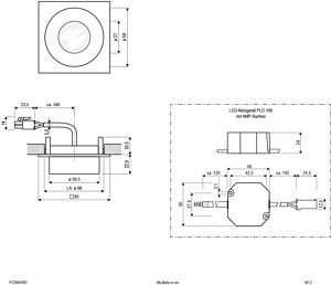 Einbau in isolierte Decken, Brandschutz "F mit Dach"