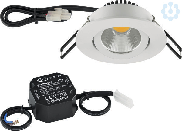 Mit der COB-LED Deckeneinbauleuchte lassen sich vielfältige Anwendungen im Innenbereich, wie z. B. Effektbeleuchtung, Raumbeleuchtung, Akzentuierte Beleuchtung und vieles mehr realisieren. Da außerdem die MM-Kennzeichnung gegeben ist, lässt sich diese sogar im Möbelbau verwenden. Zusätzliche Kosten fuer Leuchtmittel entfallen bei dieser Leuchte, da die Leistung von einem fest verbauten LED-Chip geliefert wird. Da im Lieferumfang das Netzgerät bereits enthalten ist, fallen auch hierfuer keine zusätzlichen Kosten an. Des Weiteren ist das System zusätzlich auch ueber Phasenabschnitt dimmbar. Der Schwenkwinkel beträgt 20°., Gehäusefarbe ähnlich RAL9003.