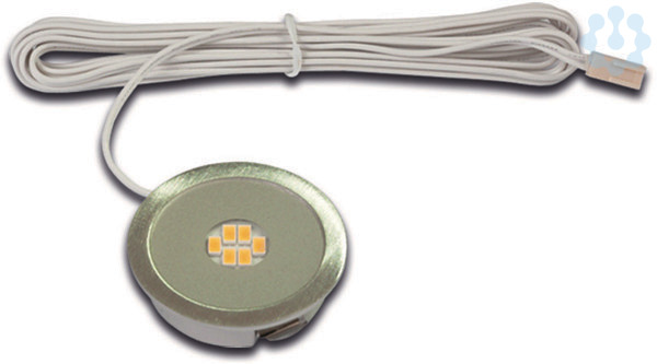 LED-Einbaustrahler, Gehäuse Aluminium, Anschlussleitung 2,5m mit LED 24-Stecker, Lichtfarbe warm weiß ca. 3000K, schnelle und einfache Montage durch Rasthaken, optionales Zubehör: dimmbarer Trafo mit Funkfernbedienung oder 1-10V Dimmer, Montagefeder zum Aufschrauben für den sicheren Halt in Leichtbaudecken