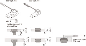 Kleiner LED-Einbaustrahler, Gehäuse alu-eloxiert, Anschlussleitung 1,8m mit LED 350-Stecker, schnelle und einfache Montage durch Rasthaken, optionales Zubehör: dimmbarer Trafo für Phasendimmer oder 1-10V Dimmer, Lichtfarbe neutral weiß ca. 4000K