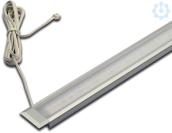 Flache LED-Einbauleuchte für Fräsnut 30mm breit und 12mm tief, Gehäuse Alu, Anschlussleitung 2,5m mit LED 24-Stecker, Lichtfarbe neutral weiß ca.4000K, optionales Zubehör: dimmbarer Trafo mit Funkfernbedienung oder 1-10V Dimmer