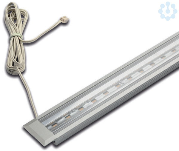 Flache LED-Einbauleuchte mit klarer Abdeckung und Reflektor zur asymmetrischen Ausleuchtung, für Fräsnut 30mm breit und 12mm tief, Gehäuse Alu, Anschlussleitung 2,5m mit LED 24-Stecker, Lichtfarbe neutral weiß ca.4000K, optionales Zubehör: dimmbarer Trafo mit Funkfernbedienung oder 1-10V Dimmer