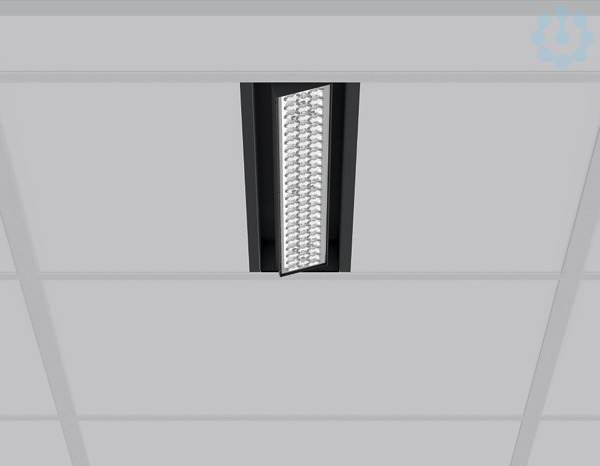 Einlege/Einbau-Flächenstrahler. Gehäuse Stahlblech pulverbeschichtet. 90° vertikal schwenkbar. Hocheffiziente LED-Einheiten mit optimaler Lichtlenkung durch präzise Linsenoptik aus Kunststoff (PC) klar. Spezielle Mikrostrukturen reduzieren Gelbsaum. Lichtverteilung asymmetrisch. Geeignet zum Einlegen in Rasterdecken Modul 625. Inklusive angeschlossenem Betriebsgerät in separater Gerätebox. Geeignet für Durchgangsverdrahtung. MultiLumen: Leuchtenlichtstrom ist in 3 Stufen einstellbar. Zubehör: Einbaurahmen zur Montage in abgehängte Decken.