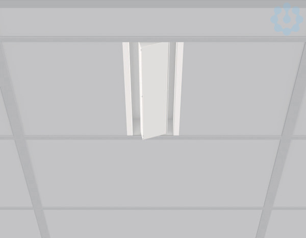 Einlege/Einbau-Flächenstrahler. Gehäuse Stahlblech pulverbeschichtet. 90° vertikal schwenkbar. Hocheffiziente LED-Einheiten mit bündigem opalen Diffusor aus vergilbungsfreiem PMMA. Lichtaustritt symmetrisch breitstrahlend. Geeignet zum Einlegen in Rasterdecken Modul 600. Inklusive angeschlossenem Betriebsgerät in separater Gerätebox. Geeignet für Durchgangsverdrahtung. MultiLumen: Leuchtenlichtstrom ist in 3 Stufen einstellbar. Zubehör: Einbaurahmen zur Montage in abgehängte Decken.