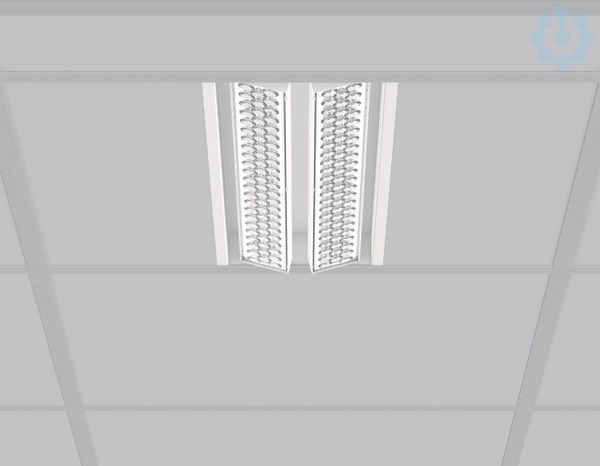 Einlege/Einbau-Flächenstrahler. Gehäuse Stahlblech pulverbeschichtet. 2x90° vertikal schwenkbar. Hocheffiziente LED-Einheiten mit optimaler Lichtlenkung durch präzise Linsenoptik aus Kunststoff (PC) klar. Spezielle Mikrostrukturen reduzieren Gelbsaum. Lichtverteilung symmetrisch. Zum Einlegen in Rasterdecken Modul 600. Inklusive angeschlossenem Betriebsgerät in separater Gerätebox. Geeignet für Durchgangsverdrahtung. MultiLumen: Leuchtenlichtstrom ist in 3 Stufen einstellbar. Zubehör: Einbaurahmen zur Montage in abgehängte Decken.