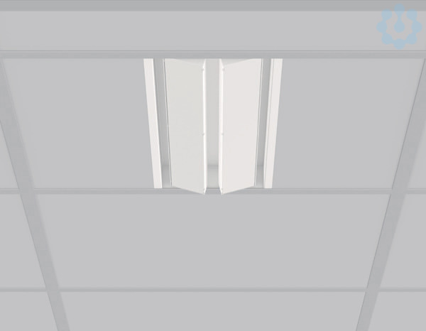 Einlege/Einbau-Flächenstrahler. Gehäuse Stahlblech pulverbeschichtet. 2x90° vertikal schwenkbar. Hocheffiziente LED-Einheiten mit bündigem opalen Diffusor aus vergilbungsfreiem PMMA. Lichtaustritt symmetrisch breitstrahlend. Zum Einlegen in Rasterdecken Modul 600. Inklusive angeschlossenem Betriebsgerät in separater Gerätebox. Geeignet für Durchgangsverdrahtung. MultiLumen: Leuchtenlichtstrom ist in 3 Stufen einstellbar. Zubehör: Einbaurahmen zur Montage in abgehängte Decken.