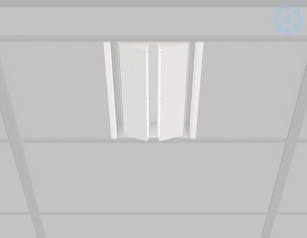 Einlege/Einbau-Flächenstrahler. Gehäuse Stahlblech pulverbeschichtet. 2x90° vertikal schwenkbar. Hocheffiziente LED-Einheiten mit bündigem opalen Diffusor aus vergilbungsfreiem PMMA. Lichtaustritt symmetrisch breitstrahlend. Zum Einlegen in Rasterdecken Modul 625. Inklusive angeschlossenem Betriebsgerät in separater Gerätebox. Geeignet für Durchgangsverdrahtung. MultiLumen: Leuchtenlichtstrom ist in 3 Stufen einstellbar. Zubehör: Einbaurahmen zur Montage in abgehängte Decken.