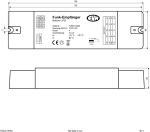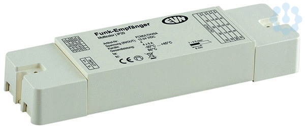 Der LED-Multicolor-Empfänger kann fuer Unicolor-, Tunable-White-, RGB-, und RGBW-Leuchten verwendet werden. Die jeweilige Betriebsart wird ueber Dipschalter eingestellt. Geeignet fuer Leuchten mit einer Betriebsspannung von 12 und 24V/DC. Die tatsächlich zu verwendende Eingangsspannung ist abhängig von der benötigten Spannung der angeschlossenen Leuchten. 1x Eingang und 4x Ausgang (RGBW). Die Schraubklemmen sind fuer Kabel von 1mm². - 2,5mm². geeignet. Technische Daten: ta: -20°.C - 45°.C, tc: 85°.C, max. Ausgangsleistung je Kanal: 6A. 72W bei 12V/DC bzw. 144W bei 24V/DC. Die Ansteuerung erfolgt ueber Funk-Sender mit 2,4GMHz. Um auch größere Anlagen problemlos umsetzen zu können, synchronisieren sich mehrere Empfänger kabellos untereinander, wobei der maximale Abstand zwischen den Empfängern 10m nicht ueberschreiten darf.