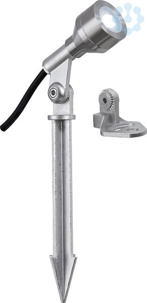 Der massive LED-Strahler kann fuer vielfältige Anwendungen zum Einsatz gebracht werden. Da im Lieferumfang sowohl ein Stativ (Montagefuß), als auch ein Erdspieß enthalten sind, kann der Spot nahezu ueberall montiert werden. Aufgrund der gegebenen Schutzart ist sogar der Einsatz unter Wasser bis zu einer Tauchtiefe von 1,5m möglich. Die 5m lange Anschlussleitung ist mit einem Stecker fuer das IP44-Stecksystem ausgestattet. Dadurch lassen sich auch größere Anlagen schnell und einfach installieren. Sowohl der Erdspieß, als auch das Stativ sind mit einem feinen Zahnraster versehen, um ein ungewolltes schwenken des Spots zu verhindern. Der Schwenkwinkel beträgt 60°.. Bei Bedarf kann das mitgelieferte LED-Leuchtmittel natuerlich jederzeit ausgetauscht werden.