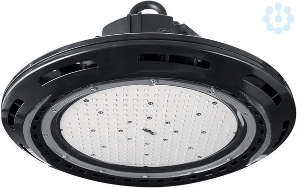LED-Hallentiefstrahler für den Innenbereich im runden, flachen Design. Abgehängte Montage mit Kette oder Seil möglich. Die Öse zur Aufhängung und eine Sicherungsschraube liegen der Leuchte bei. Steuerung via DALI möglich. Effizientes Thermomanagement mit Kühlrippen. Die Leuchte ist staubdicht, geschützt gegen Strahlwasser und schlagfest bis 5J. Druckausgleichselement zum Schutz vor Kondenswasserbildung bei Temperatur- und Druckschwankungen. Lange Lebensdauer, hoher Lichtstrom, gleichmäßige Ausleuchtung. Geringer Wartungsaufwand. Energieeinsparung bis zu 60% gegenüber einem herkömmlichen Hallentiefstrahler. Bruchsicher, geeignet für den Einsatz in IFS-zertifizierten Bereichen.