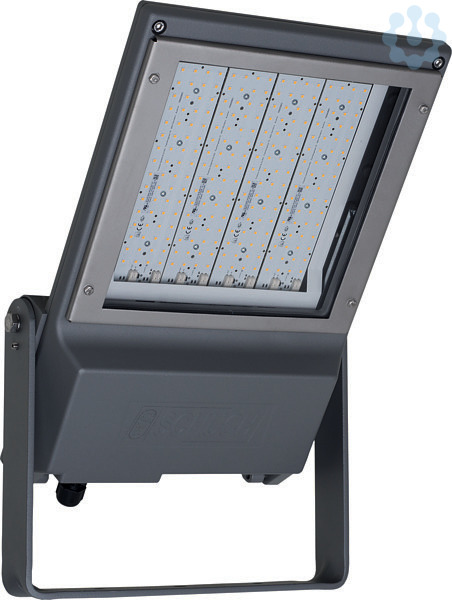 LED-Hallenleuchte, FOCO L, 106 W, 13780 lm, SKI, IP66, breitstrahlend, 4000 K, Ra? 80, Ta -40 °C/+40 °C, L70>100000 h (@ Ta max), L80>100000 h (@Ta 25°C), Scheibe Sicherheitsglas klar, Schutzabdeckung, Gehäuse Alu-Druckguss, Lackiert, Farbe grau, DB 702, für Strahlräume/-kabinen, EAN/GTIN:4041254341200.LED-Scheinwerfer FOCO L für Strahlräume, bestehend aus zweiteiligem, pulverlackiertem Aluminiumdruckgussgehäuse. Oberteil mit LED-Modulen und Optik, Unterteil mit EVG, Abdeckglas, Kabeleinführung und Zugentlastung, abklappbar. Flaches, temperaturwechselbeständiges Sicherheitsglas mit vorgesetzter, leicht austauschbarer Schutzabdeckung aus Polycarbonat im Edelstahlrahmen, Silikondichtung. Zhaga-konforme LED-Module, direkt strahlend, Multi-Layer Technologie. EVG mit hoher Stoßspannungsfestigkeit, Überlast- und Kurzschlussschutz. Befestigungsbügel um 180° schwenkbar.