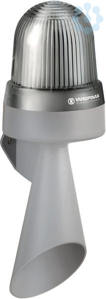 Wartungsfreie, elektronische Hupe mit einer Lebensdauer von bis zu 5.000 h, Lautstärke anwendungsspezifisch einstellbar, drei Leuchtbilder fernansteuerbar, Licht und Ton getrennt ansteuerbar für eine zweistufige Signalisierung, integrierter Winkel für einfache Wandmontage ohne zusätzliches Zubehör