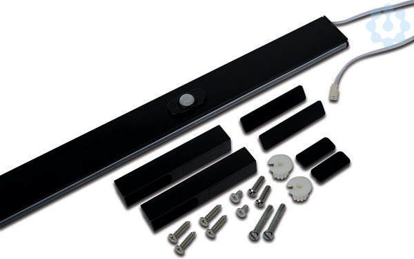 LED-Kleiderstangenleuchte mit Bewegungsmelder, Gehäuse Alu, individuell kürzbar, Anschlussleitung 2,5m mit LED 24-Stecker, Lichtfarbe neutral weiß ca.4000K, Befestigung seitlich und unter dem Boden möglich.