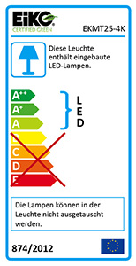 Gekennzeichnet nach Nr. 3b, Verordnung 874/2012, Anhang I (2). Diese Leuchte enthält fest eingebaute LED-Lampen., Quecksilbergehalt (mg): 0, Schaltzyklen: 25000, Zündzeit/Startzeit (s): <1, Lichtstromerhalt: 70.00, SDCM: <6