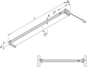 Schrankinnenleuchte mit berührungslosem IR Sensorschalter, Anschlussleitung 2,5m mit LED 24-Stecker, Lichtfarbe neutral weiß ca.4000K, Montageclip zur seitlichen Befestigung bei Auszügen und 500mm selbstklebender Kabelkanal beiliegend