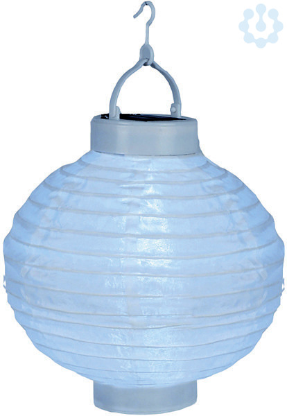 LED-Solarlampion, in weiß, inklusive Batterie und Solarpanel, für den Außenbereich. Höhe ohne Henkel: ca. 22cm, Durchmesser: ca. 20cm, Leuchtdauer: ca. 6 Stunden. Ein-Ausschalter an der Unterseite des Solarmoduls, inkl. Akku: 1xAAA Ni-MH 1,2V 600mAh. Das Solarmodul wird Tagsüber durch Sonneneinstrahlung geladen. Bei Dunkelheit fängt die weiße LED dank eingearbeiteter Fotozelle von selbst an zu leuchten. Die Lampions dienen als dekorative Partybeleuchtung, sie können aufgrund ihrer Leistung nicht als volle Beleuchtung eingesetzt werden. Energieeffizienzklasse: nicht kennzeichnungspflichtig