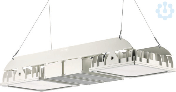 LED Strahler mit Abdeckscheibe aus Einscheibensicherheitsglas (ESG), optimiert für besonders anspruchsvolle industrielle Anforderungen. Geeignet für Umgebungstemperaturen von -40°C bis zu +50°C. Wartungsarm, Gehäuse aus Aluminiumdruckguss, weiß beschichtet. Konverter im Leuchtengehäuse integriert. Elektrischer Anschluss durch Schnell-Steck-System, kurze, alterungsbeständige Dichtungen aus Silikon, Zweipunkt-Befestigung durch Seilpendel (2.000 mm) mit montagefreundlicher, werkzeugloser Schnelljustierung, Wand- und Decken-Befestigungsbügel als Zubehör erhältlich.