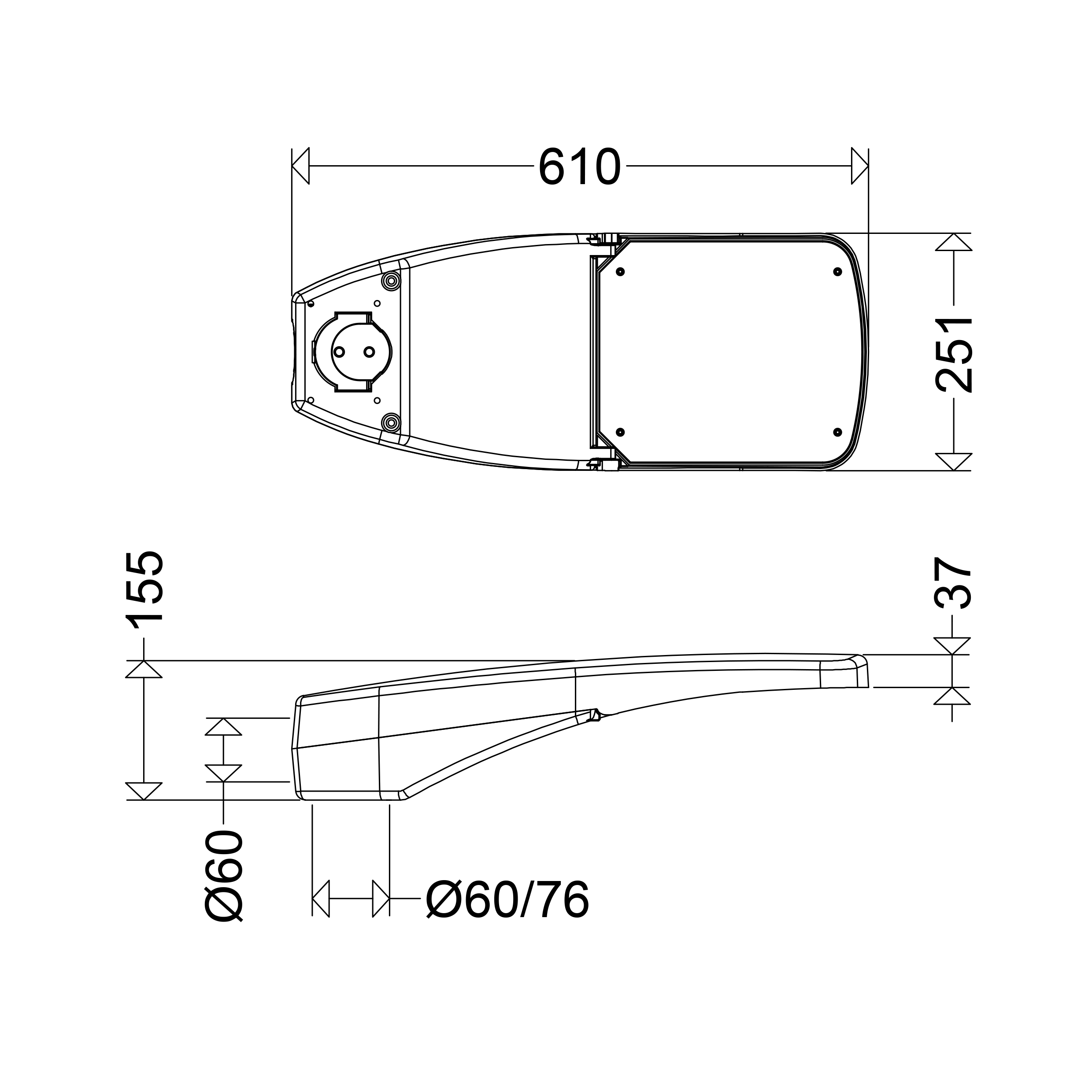 LED-Außenleuchte, 17 W, 2610 lm, SKII, IP66, asymmetrisch-breitstrahlend, 4000 K, Ra? 70, Ta -40 °C/+50 °C, L90>100000 h (@ Ta max), Leistungsreduzierung mit Steuerphase (LR), Scheibe Sicherheitsglas klar, Gehäuse Alu-Druckguss, Lackiert, Farbe grau, DB 702, EAN/GTIN:4041254262536.LED-Außenleuchte, bestehend aus zweiteiligem, pulverlackiertem Aluminiumdruckgussgehäuse. Oberteil mit EVG, LED-Modulen, Optiken und rahmenlosem, flachem Sicherheitsglas, vom Unterteil aufklapp- und abnehmbar. Unterteil mit integriertem Mastbefestigungssystem, Neigungsverstellung, Kabeleinführung, Trennsteckverbindung, Zugentlastung und Druckausgleichssystem mit interner Entlüftung in den Mastanschlussraum (verschmutzungssicher). Zhaga-konforme LED-Module mit hocheffizienten Optiken, direkt strahlend, Multi-Layer Technologie. EVG mit hoher Stoßspannungsfestigkeit, Überlast- und Kurzschlussschutz. Universal-Mastbefestigungssystem aus Aluminiumdruckguss für Mastaufsatz Ø 60/76mm und Mastansatz Ø 42/60mm.