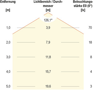 Lichtstromrückgang bei mittl. Nutzungsdauer 50.000 h bei 25 °C Umgebungstemp.