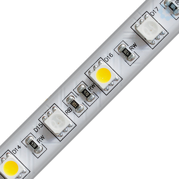 Der LED-Strip kann in jeder Wunschlänge (Angabe in Meter), bis maximal 10m, unter Beachtung des Teilungsmaßes von 166mm konfektioniert werden. Die maximale Einspeiselänge bei einseitiger Einspeisung beträgt 5m. Der konfektionierte Strip wird standardmäßig einseitig mit einer 0,5m langen Anschlussleitung (Kabelquerschnitt: 0,3mm².) ausgeliefert. Wichtig: Um ein Überhitzen des Strips zu vermeiden, darf dieser nur auf wärmeleitenden Untergruenden verbaut werden, vorzugsweise auf bzw. in Aluminiumprofilen. Die weiß-Farbtemperatur beträgt 3000K. Die maximale Lichtausbeute beträgt 120lm im RGB-Modus und 432lm im Weiß-Modus.