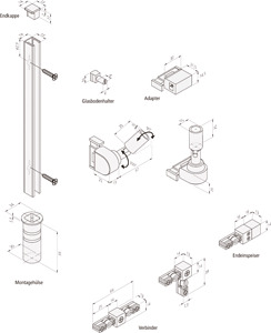 LED-Stromschiene, aluminium eloxiert, beliebig kürzbar, inkl. Befestigungsschrauben, Zubehör: Einspeiser, Linienverbinder, Eckverbinder, Endkappe, Montagehülse zur freien senkrechten Verwendung der Schiene in einer Glasvitirine, Glasbodenträger, durch die Komination unterschiedlicher Lichtfarben und das einfache Umstecken können verschiedene Materialien mit dem richtigen Licht in Szene gebracht werden
