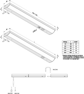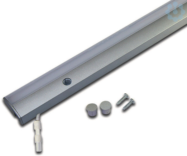 Flache LED Unterbauleuchte für 230V, Gehäuse Alu eloxiert, einfache Montage (direkt durchschraubbar),mit sehr kleinem (Stecker D= 7,5mm) Hochvolt-Stecksystem von Tyco AMP, Lichtfarbe warm weiß ca.3000K, mit integriertem Schalter