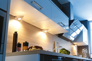 LED-Unterbauleuchte mit homogenem Flächenlicht, Gehäuse edelstahl, Anschlussleitung 2,5m mit LED 24-Stecker, Lichtfarbe warm weiß ca.3000K, optionales Zubehör: Dimm-Controller mit Funkfernbedienung, 1-10V, DALI oder WiFi App zum Schalten und Dimmen.