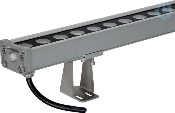 Der LED Wallwasher kann nicht nur fuer zahlreiche Anwendungen im Außenbereich, sondern ebenso im Innenbereich verwendet werden. Die Montage erfolgt mit den im Lieferumfang enthaltenen Haltern. Diese ermöglichen einen Schwenkbereich von 180°.. Die angegebene Höhe ist inkl. Halter, im nicht geschwenkten Zustand gemessen. Zur Vermeidung von Kondenswasser verfuegt der Wallwasher ueber ein selbstentlueftendes Entlueftungsventil. An beiden Seiten des Wallwasher befindet sich eine jeweils 20cm lange Anschlussleitung mit Stecker bzw. Buchse, wodurch mehrere Wallwascher (max. 4) miteinander verbunden und somit ueber nur ein Betriebsgerät betrieben werden können. Die Zuleitung zum Anschluss an das Netzgerät ist separat, in den Längen 10m (P65ASL1000UNI) oder 3m (P65ASL300UNI) erhältlich. Ebenso ist eine 1m lange Verbindungsleitung separat erhältlich (P65VBL100UNI).