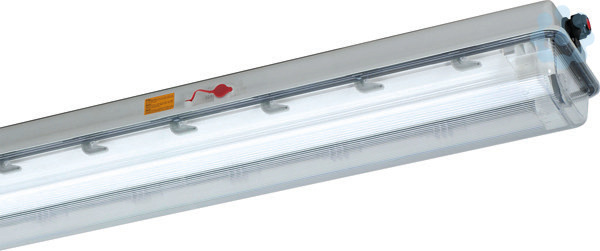 EX-LED-Wannenleuchte, EX-Zone 1/21/2/22, 28 W, 4230 lm, SKI, IP66, breitstrahlend, 6500 K, Ra? 80, Ta -25 °C/+55 °C, L80B50>100000 h (@ Ta 25°C), L90B50>75000 h (@ Ta 25°C), L80B50>100000 h (@ Ta max), Wanne PC klar mit Innenprismen, Verschluss Kunststoff, Gehäuse glasfaserverstärktes Polyester, Farbe grau, Rein-Raus-Verdrahtung (RR), EAN/GTIN:4041254281865.Explosionsgeschützte LED-Wannenleuchte mit Zentralverschluss für Zone 1/21. Glasfaserverstärktes Polyestergehäuse, klare Abschlusswanne aus Polycarbonat mit Innenprismen und Silikondichtung. Aluminiumreflektor lackiert, mit vergossenen LED-Modulen und satinierten Entblendungselementen, abklapp-und herausnehmbar. Gekapseltes EVG mit Überspannungs-, Überlast- und Kurzschlussschutz.