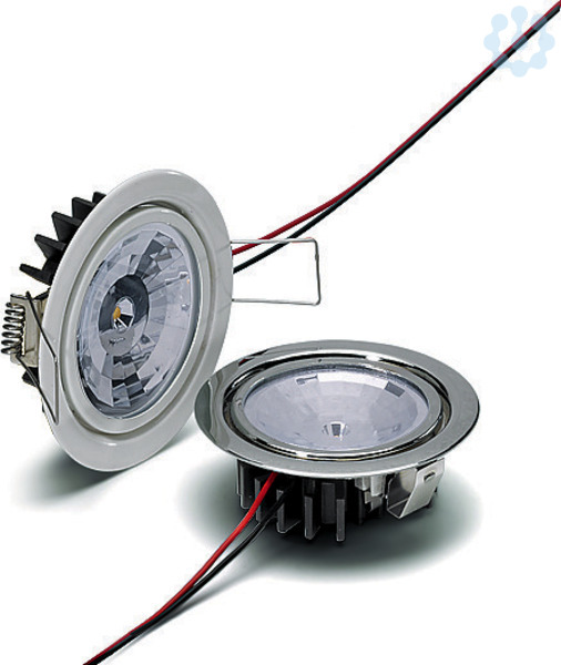 Kompletter LEDSpot ausgestattet mit Optik, Kühlkörper, Leitungen und Metallrahmen