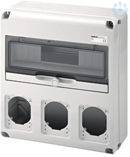 IEC Leergehaeuse fuer Steckdosenkombinationen. Mit Flanschoeffnungen zur einfachen und schnellen Montage von IEC Anbausteckdosen. Verteilerraum unter transparenter Abdeckung zur freien Bestueckung mit Reiheneinbaugeraeten. Der Verteilerraum kann durch ein Sicherheitsschloss nachgeruestet werden. Das Oberteil ist durch Verwendung von Kugelkopfschrauben standardmaessig beidseitig als Scharnier ausgefuehrt. 3 Flansche (LxB) 85x75 mm fuer IEC Anbausteckdosen 16A Abdeckrahmen der Baureihe System GW27401/GW27403. 1 Blindflansch ist im Lieferumfang enthalten. Gehaeuseschutzart IP65 (Die Schutzart wird durch die Verwendung der Steckdosen und Leitungseinfuehrungen bestimmt).