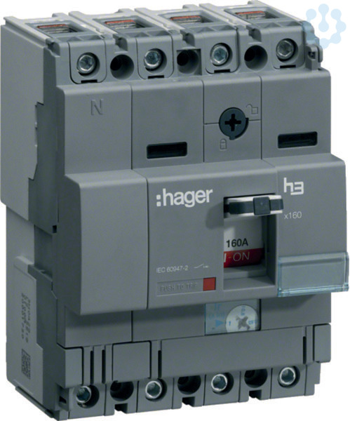 Lasttrennschalter h3 x160 4 polig 160A CTC. Lasttrennschalter nach DIN EN 60947-3 Baugröße x160, mit magnetischer (fix) Auslösung zum Schalten elektrischer Anlagen und Netze. Montage auf Montageplatte. An der Stellung des Knebels sind die drei unterschiedlichen Betriebszustände erkennbar (EIN = oben, AUS = unten, ausgelöst = Mittelstellung). Die Schalter verfügen über eine mechanische Prüftaste. Über verschiedene Zubehöre kann die Funktion der Leistungsschalter erweitert werden. Inklusive Phasentrennwände.