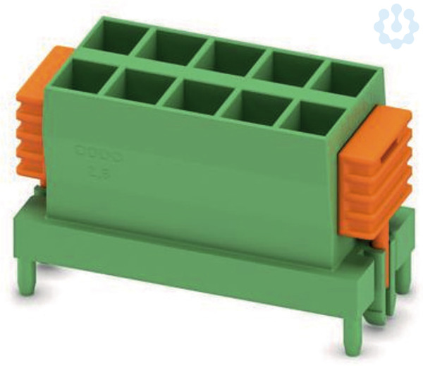 Leiterplatten-Direktstecker, Nennquerschnitt: 2,5 mm², Farbe: grün, Nennstrom: 12 A, Bemessungsspannung (III/2): 320 V, Kontaktoberfläche: Zinn, Anzahl der Potenziale: 10, Anzahl der Reihen: 2, Polzahl pro Reihe: 5, Anzahl der Anschlüsse: 10, Artikelfamilie: CDDC 2,5/..-PV, Rastermaß: 5 mm, Anschlussart: Crimpanschluss, Montage: SKEDD - Direktstecktechnik, Anschlussrichtung Leiter/Platine: 90 °, Pin-Layout: Lineares Pinning, Stecksystem: SKEDD, Verriegelung: Rastverriegelung, Befestigungsart: Rastflansch, Verpackungsart: verpackt im Karton