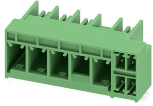 Leiterplatten-Hybrid-Grundleiste, Nennstrom: 41 A, Bemessungsspannung (III/2): 630 V, Nennquerschnitt: 6 mm², Polzahl: 8, Rastermaß: 7,62 mm, Farbe: grün, Kontaktoberfläche: Zinn, Montage: Wellenlöten, Pin-Layout: Lineares Pinning, Pinlänge [P]: 3,1 mm