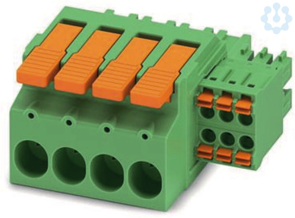 Leiterplatten-Hybrid-Stecker, Nennstrom: 41 A, Bemessungsspannung (III/2): 1000 V, Nennquerschnitt: 6 mm², Polzahl: 10, Rastermaß: 7,62 mm, Anschlussart: Push-in-Federanschluss, Farbe: grün, Kontaktoberfläche: Zinn