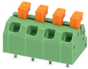 Leiterplattenklemme, Nennstrom: 13,5 A, Bemessungsspannung (III/2): 320 V, Nennquerschnitt: 1 mm², Anzahl der Potenziale: 4, Anzahl der Reihen: 1, Polzahl pro Reihe: 4, Artikelfamilie: SPTAF 1/..-LL, Rastermaß: 5 mm, Anschlussart: Push-in-Federanschluss, Montage: Wellenlöten, Anschlussrichtung Leiter/Platine: 45 °, Farbe: grün, Pin-Layout: Lineares Doppel-Pinning, Pinlänge [P]: 2,6 mm, Verpackungsart: verpackt im Karton