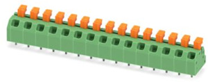 Leiterplattenklemme, Nennstrom: 13,5 A, Bemessungsspannung (III/2): 320 V, Nennquerschnitt: 1 mm², Anzahl der Potenziale: 15, Anzahl der Reihen: 1, Polzahl pro Reihe: 15, Artikelfamilie: SPTAF 1/..-LL, Rastermaß: 5 mm, Anschlussart: Push-in-Federanschluss, Montage: Wellenlöten, Anschlussrichtung Leiter/Platine: 45 °, Farbe: grün, Pin-Layout: Lineares Doppel-Pinning, Pinlänge [P]: 2,6 mm, Verpackungsart: verpackt im Karton