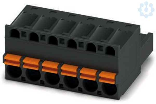 Leiterplattenstecker, Nennquerschnitt: 2,5 mm², Farbe: schwarz, Nennstrom: 12 A, Bemessungsspannung (III/2): 320 V, Kontaktoberfläche: Zinn, Kontaktart: Buchse (female), Anzahl der Reihen: 1, Polzahl pro Reihe: 6, Artikelfamilie: FKC 2,5/..-ST, Rastermaß: 5 mm, Anschlussart: Push-in-Federanschluss, Anschlussrichtung Leiter/Platine: 0 °, Rasthaken: - Rasthaken, Stecksystem: CLASSIC COMBICON, Verriegelung: ohne, Befestigungsart: ohne, Verpackungsart: verpackt im Karton