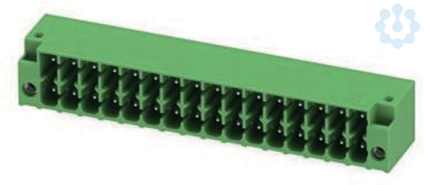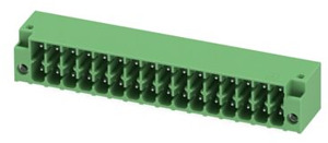 Leiterplattengrundleiste, Nennquerschnitt: 1,5 mm², Farbe: grün, Nennstrom: 8 A, Bemessungsspannung (III/2): 160 V, Kontaktoberfläche: Zinn, Kontaktart: Stift (male), Anzahl der Potenziale: 32, Anzahl der Reihen: 2, Polzahl pro Reihe: 16, Anzahl der Anschlüsse: 32, Artikelfamilie: DMC 1,5/..-G1F, Rastermaß: 3,5 mm, Montage: Wellenlöten, Pinlänge [P]: 3,5 mm, Stecksystem: MINI COMBICON - DFMC 1,5, Verriegelung: Rastverriegelung, Befestigungsart: Lock & Release Gewindeflansch, Verpackungsart: verpackt im Karton