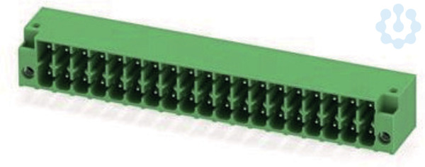 Leiterplattengrundleiste, Nennquerschnitt: 1,5 mm², Farbe: grün, Nennstrom: 8 A, Bemessungsspannung (III/2): 160 V, Kontaktoberfläche: Zinn, Kontaktart: Stift (male), Anzahl der Potenziale: 38, Anzahl der Reihen: 2, Polzahl pro Reihe: 19, Anzahl der Anschlüsse: 38, Artikelfamilie: DMC 1,5/..-G1F, Rastermaß: 3,5 mm, Montage: Wellenlöten, Pinlänge [P]: 3,5 mm, Stecksystem: MINI COMBICON - DFMC 1,5, Verriegelung: Rastverriegelung, Befestigungsart: Lock & Release Gewindeflansch, Verpackungsart: verpackt im Karton