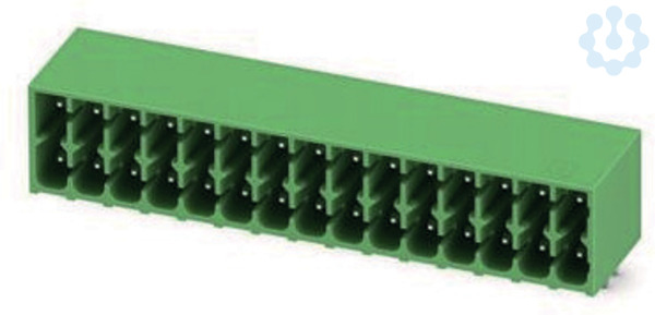 Leiterplattengrundleiste, Nennquerschnitt: 1,5 mm², Farbe: grün, Nennstrom: 8 A, Bemessungsspannung (III/2): 160 V, Kontaktoberfläche: Zinn, Kontaktart: Stift (male), Anzahl der Potenziale: 30, Anzahl der Reihen: 2, Polzahl pro Reihe: 15, Anzahl der Anschlüsse: 30, Artikelfamilie: DMC 1,5/..-G1, Rastermaß: 3,5 mm, Montage: Wellenlöten, Pinlänge [P]: 3,5 mm, Stecksystem: MINI COMBICON - DFMC 1,5, Verriegelung: ohne, Befestigungsart: ohne, Verpackungsart: verpackt im Karton