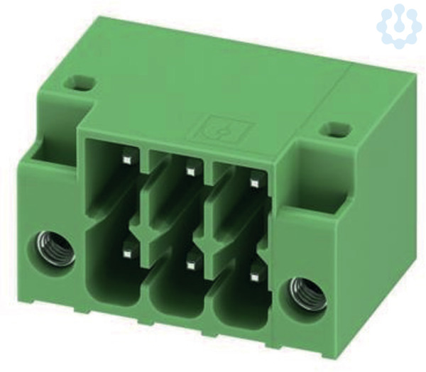 Leiterplattengrundleiste, Nennquerschnitt: 1,5 mm², Farbe: grün, Nennstrom: 8 A, Bemessungsspannung (III/2): 160 V, Kontaktoberfläche: Zinn, Kontaktart: Stift (male), Anzahl der Potenziale: 6, Anzahl der Reihen: 2, Polzahl pro Reihe: 3, Anzahl der Anschlüsse: 6, Artikelfamilie: DMC 1,5/..-G1F, Rastermaß: 3,5 mm, Montage: Wellenlöten, Pinlänge [P]: 3,5 mm, Stecksystem: MINI COMBICON - DFMC 1,5, Verriegelung: Rastverriegelung, Befestigungsart: Lock & Release Gewindeflansch, Verpackungsart: verpackt im Karton