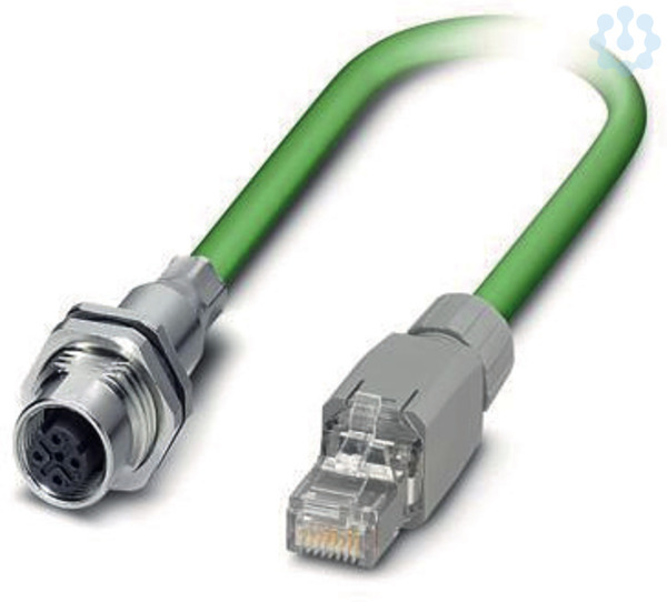 Konfektioniertes PROFINET-Kabel, Typ B, CAT5e, geschirmt, Sternvierer, AWG 22 flexibel (7-drähtig), RAL 6018 (gelbgrün), Wanddurchführung M12, 4-polig, D-kodiert auf RJ45-Stecker, Länge: 1 m